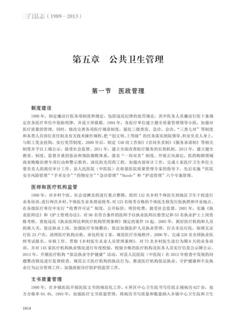 定在各医疗单位中张贴明律,并设立举报箱。1994 年,各医疗单位建立健全质量管理领导小组,加强对