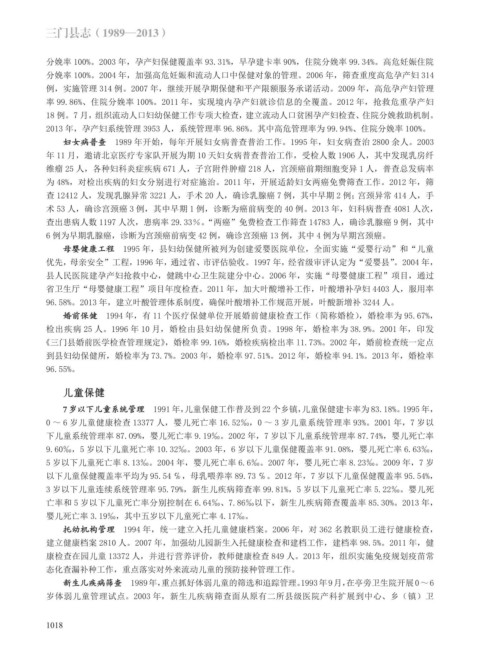 7 岁以下儿童系统管理 1991 年,儿童保健工作普及到 22 个乡镇,儿童保健建卡率为 83.18%。1995 年,