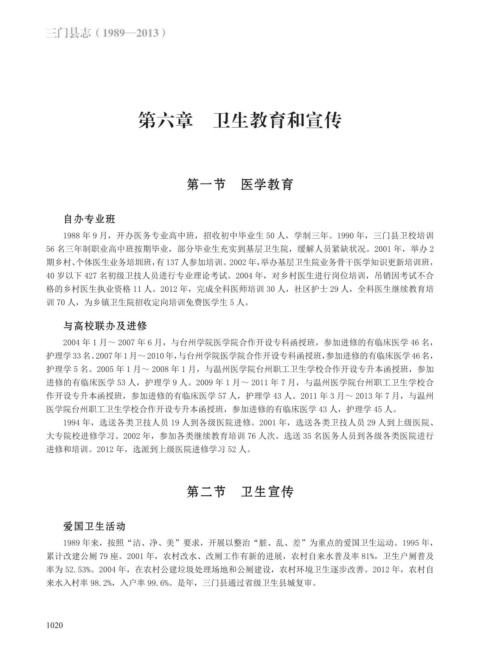 来水入村率 98.2%,入户率 99.6%。是年,三门县通过省级卫生县城复审。