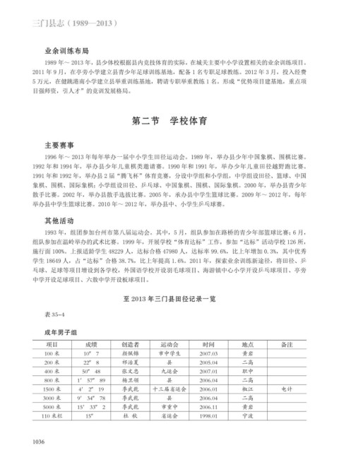 至 2013 年三门县田径记录一览