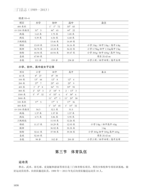 铁饼 30.78 米 43.18 米 36.52 米 小学 0.75kg 初中 1.5 ㎏高中 2 ㎏