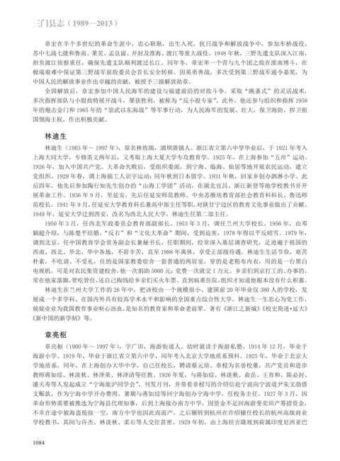林迪生(1903 年~ 1997 年),原名林攸绵,浦坝港镇人。浙江省立第六中学毕业后,于 1921 年考入