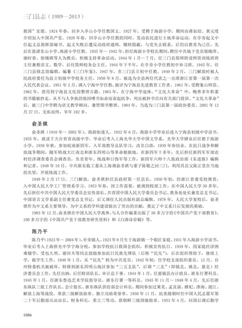 和记者。1948 年 10 月,中共浙东临工委从上海调俞圣祺与妻子陈敬之回三门,利用其岳父陈正堂在当地