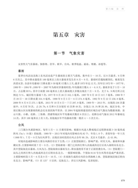 6 月次之,其中降水强度在 100 毫米以上的大暴雨多发生在 8 月~ 9 月。暴雨时若遇海潮顶托,极易发生