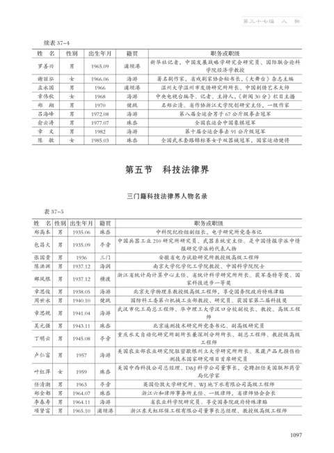 三门籍科技法律界人物名录