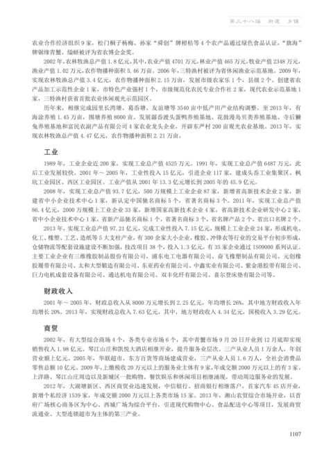 后工业发展较快。2001 年~ 2005 年,工业性投入 15 亿元,引进企业 117 家,建成头岙工业集聚区、枫