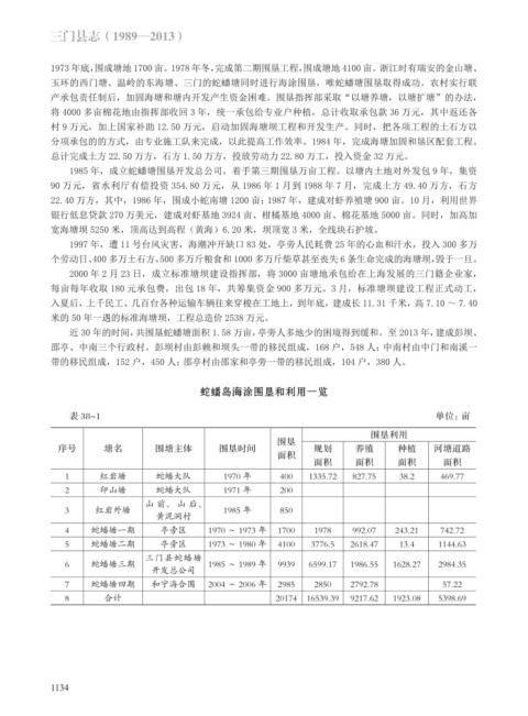 1973 年底,围成塘地 1700 亩。1978 年冬,完成第二期围垦工程,围成塘地 4100 亩。浙江时有瑞安的金山塘、