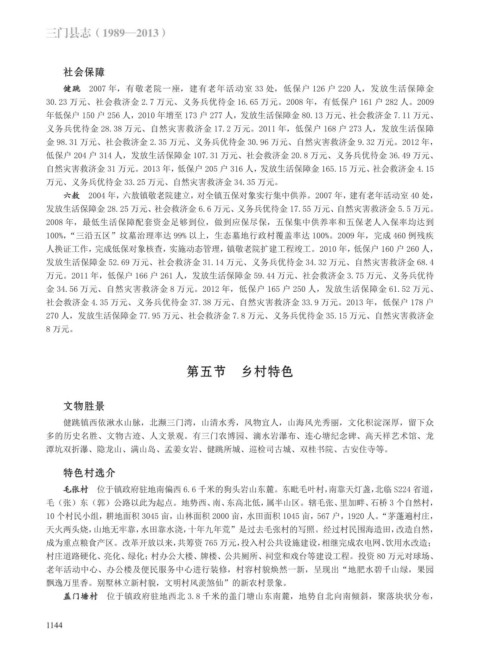 万元。2011 年,低保户 166 户 261 人,发放生活保障金 59.44 万元、社会救济金 3.75 万元、义务兵优待
