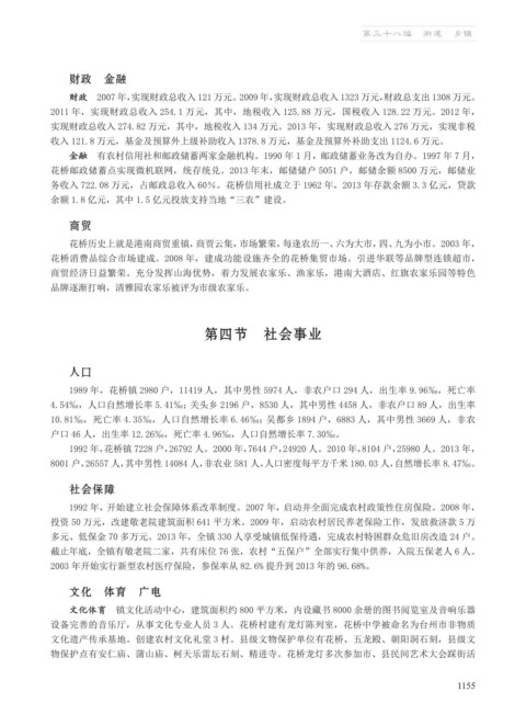 1992 年,花桥镇 7228 户,26792 人。2000 年,7644 户,24920 人。2010 年,8104 户,25980 人。2013 年,