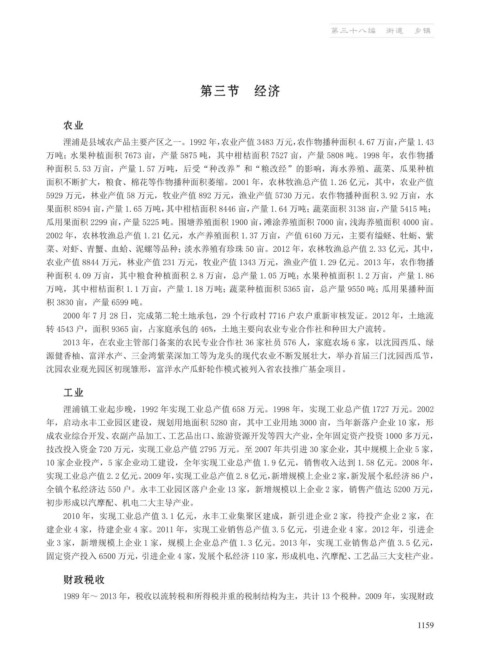 菜、对虾、青蟹、血蛤、泥螺等品种;淡水养殖有珍珠 50 亩。2012 年,农林牧渔总产值 2.33 亿元,其中,