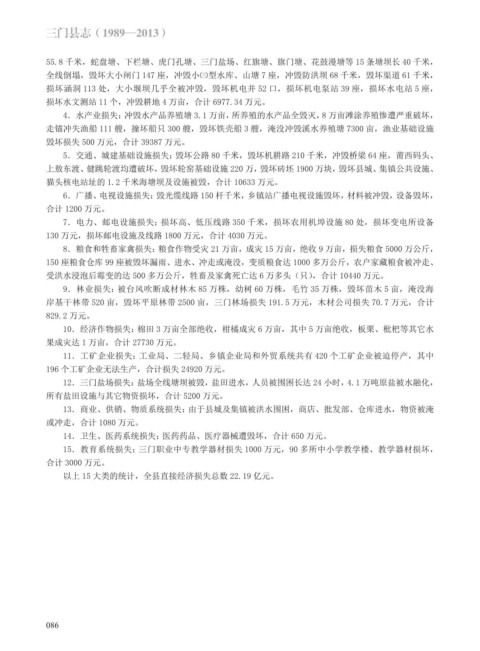 12.三门盐场损失:盐场全线塘坝被毁,盐田进水,人员被围困长达 24 小时,4.1 万吨原盐被水融化,