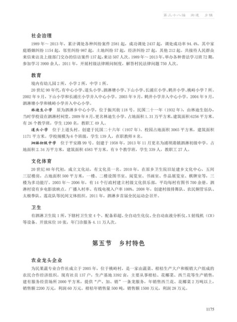 20 世纪 90 年代,有中心小学、道头小学、泗淋塘小学、下山小学、长浦庄小学、鹤井小学、桃峙小学 7 所。