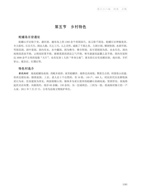 黄泥洞村 地处蛇蟠岛南部,西毗乡政府,南至蛇蟠洋。地势北高南低,聚落呈点状,村落依山而建,