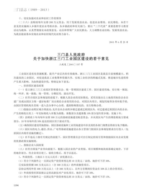 关于加快浙江三门工业园区建设的若干意见