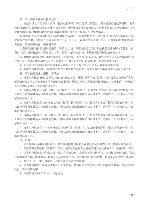 5.当年入库税金在 50—100 万元的,授予厂长(经理)“三门县优秀经营者”称号,解决农转非 1 名;