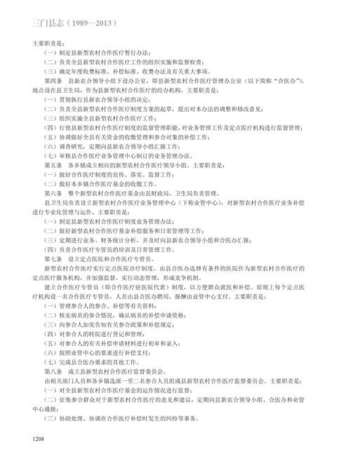 第四条 县新农合领导小组下设办公室,即县新型农村合作医疗管理办公室(以下简称“合医办”),