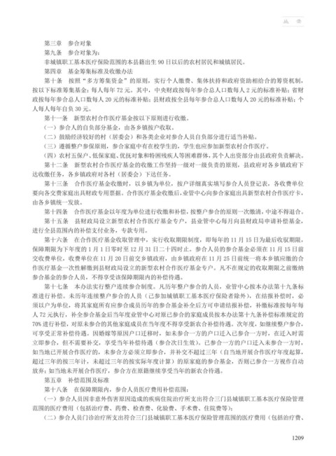 (一)参合人的自负部分基金,由各乡镇按户收取。