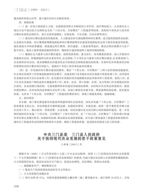 根据中央〔2009〕1 号文件和党的十七届三中全会决议精神,按照《三门县国民经济和社会发展第
