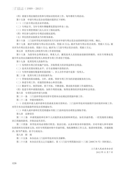 第二十六条 本办法自发文之日起施行,原《三门县专利奖励办法》(三政 [2008]76 号)同时废止。