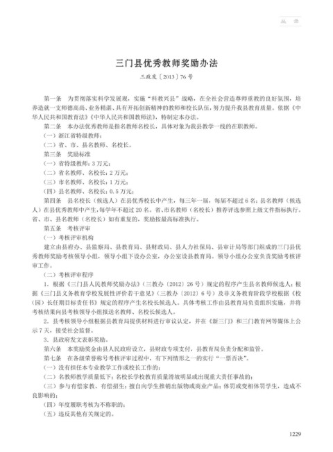三门县优秀教师奖励办法
