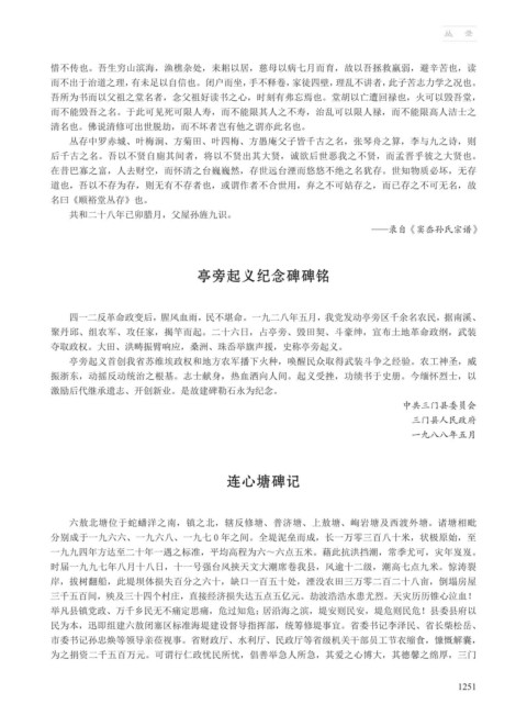 亭旁起义纪念碑碑铭
