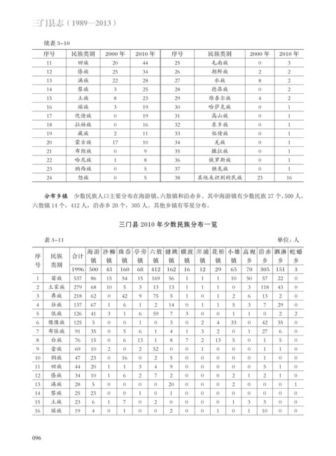 三门县 2010 年少数民族分布一览