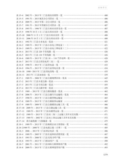 表 16-3 1989 年~ 2013 年三门县小水电上网电量(二)…………………………………………… 422