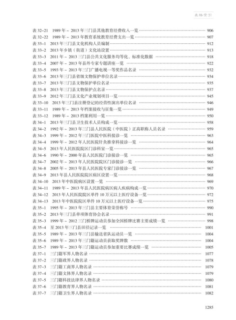 表 37-4 三门籍文体界人物名录 …………………………………………………………………… 1079