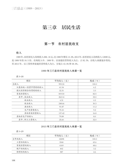 1989年,农村居民人均纯收入686.16元,比1988年增长13.0%。2013年,农村居民人均纯收入12698元,