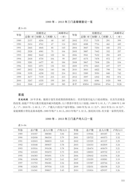人 / 户,2010 年,2.69 人 / 户。户籍人口的分户逐年增加,1989 年为 10.11 万户,2013 年为 13.19 万户。