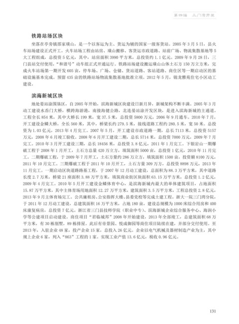 2013 年 9 月主体育场完工。公共廉租房、公安指挥大楼、县委党校等完成土建工程。浙大一院三门湾分院,