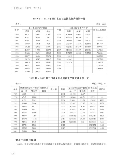 1989 年~ 2013 年三门县全社会固定资产投资一览
