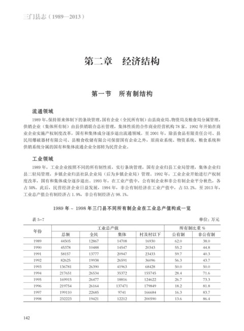 1989 年,保持原来体制下的条块管理,国有企业(全民所有制)由县商业局、物资局及粮食局分属管理,