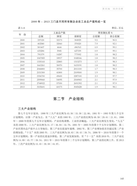 末的 2000 年,三大产业比例为 31.17∶36.04∶32.79。2001 年~ 2005 年的第十个五年计划期间,第二