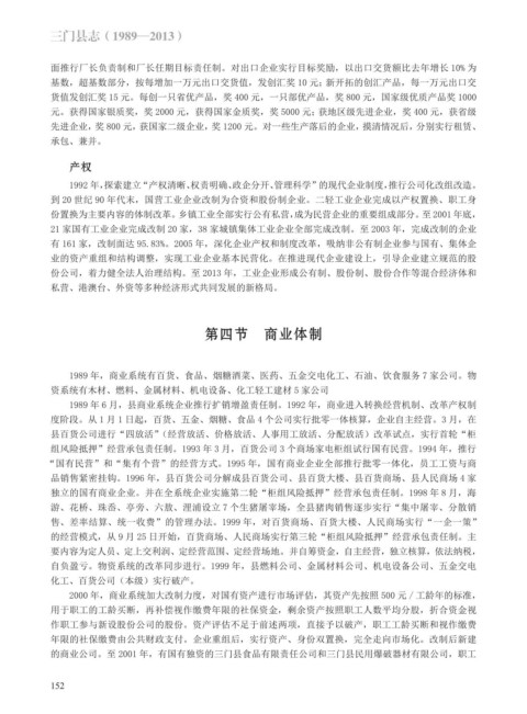 1989 年 6 月,县商业系统企业推行扩销增盈责任制。1992 年,商业进入转换经营机制、改革产权制