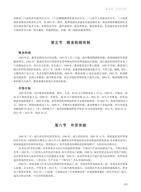 岩等。1992 年,三门县列入对外经济开放县,加大外贸出口份额。1999 年,国有外贸企业实行零资产改制,