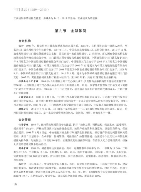 支行。2007 年,其他股份制商业银行相继入驻三门。至 2013 年末,共有 12 家银行业金融机构。