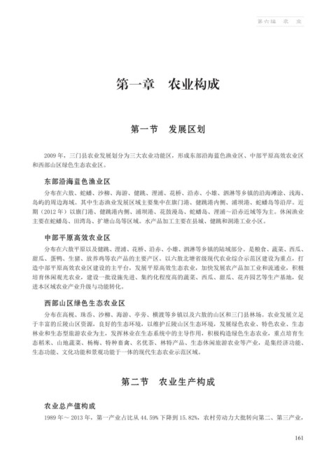 2009 年,三门县农业发展划分为三大农业功能区,形成东部沿海蓝色渔业区、中部平原高效农业区