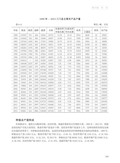 1989 年~ 2013 三门县主要农产品产量