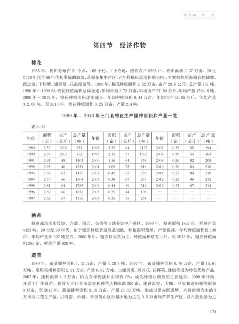 312.08 吨。至 2013 年,棉花种植面积 0.25 万亩,产量 214 吨。