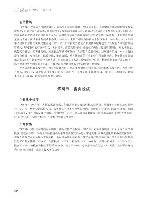 1989 年,改春秋二季踏栏补针,为春季全面防疫注射。2005 年开始,全县实施主要动物疫病强制免