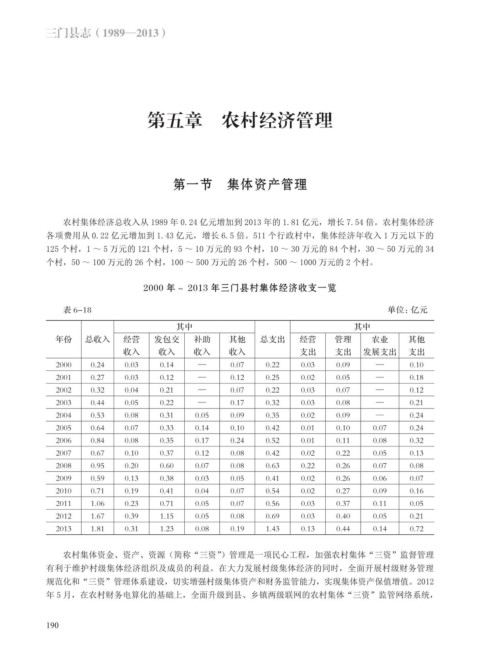 农村集体经济总收入从 1989 年 0.24 亿元增加到 2013 年的 1.81 亿元,增长 7.54 倍。农村集体经济