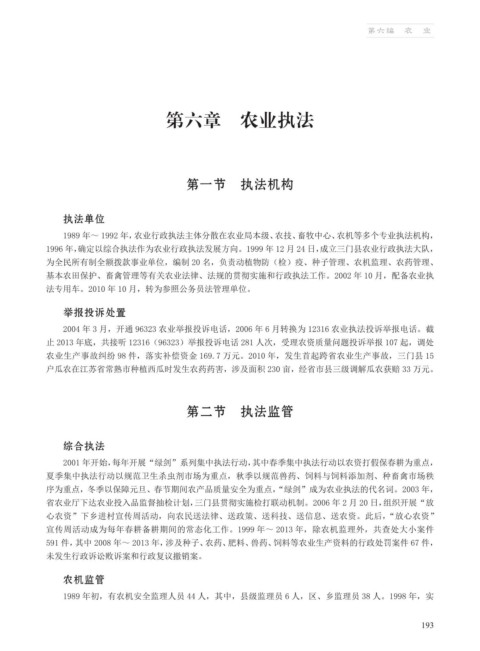 1989 年~ 1992 年,农业行政执法主体分散在农业局本级、农技、畜牧中心、农机等多个专业执法机构,