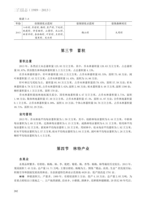 每亩蓄积为 2.68 立方米,近熟林每亩蓄积为 4.15 立方米,成熟林每亩蓄积为 6.31 立方米。特用林平均