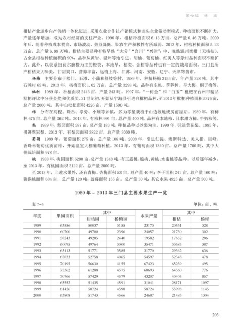 1989 年~ 2013 年三门县主要水果生产一览