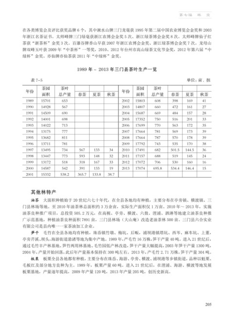 广示范基地,种植油茶良种面积 7891 亩,三门县林场(大山庵)改造老油茶林 500 亩。三门县六合实业