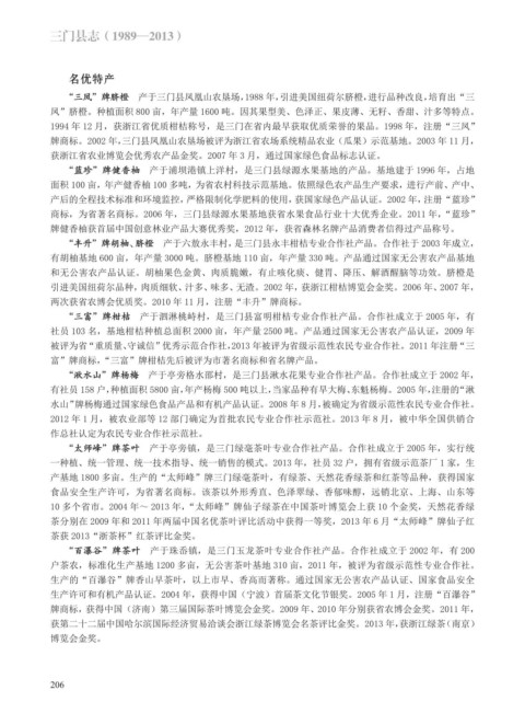 牌商标。2002 年,三门县凤凰山农垦场被评为浙江省农场系统精品农业(瓜果)示范基地。2003 年 11 月,