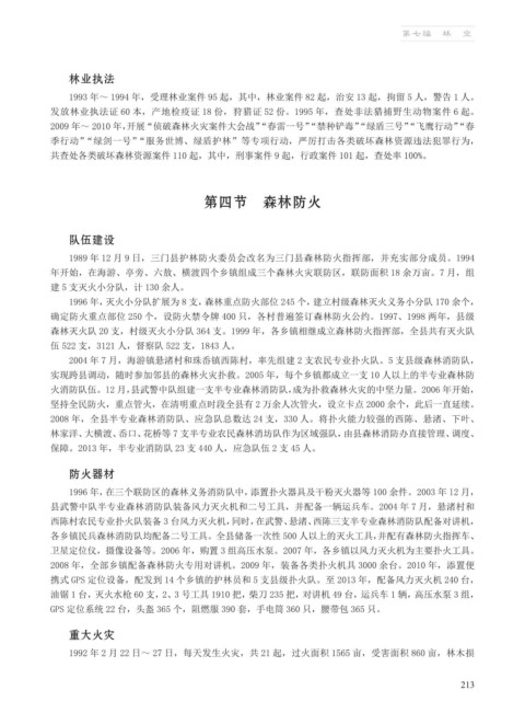 森林灭火队 20 支,村级灭火小分队 364 支。1999 年,各乡镇相继成立森林防火指挥部,全县共有灭火队
