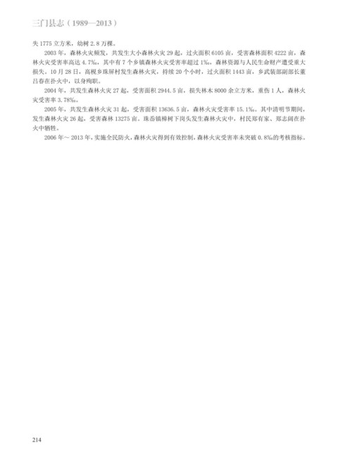 2006 年~ 2013 年,实施全民防火,森林火灾得到有效控制,森林火灾受害率未突破 0.8‰的考核指标。