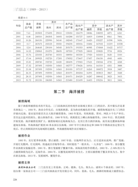 名渔场之一。1956 年,渔业合作化后,出现机帆船,是为渔业机械化的开端,捕捞海域逐步从三门湾沿
